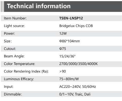 Recessed In Anti Glare 1x Power Led Bridgelux COB 12w / Die-Cast Aluminum Body& Heat Sink.