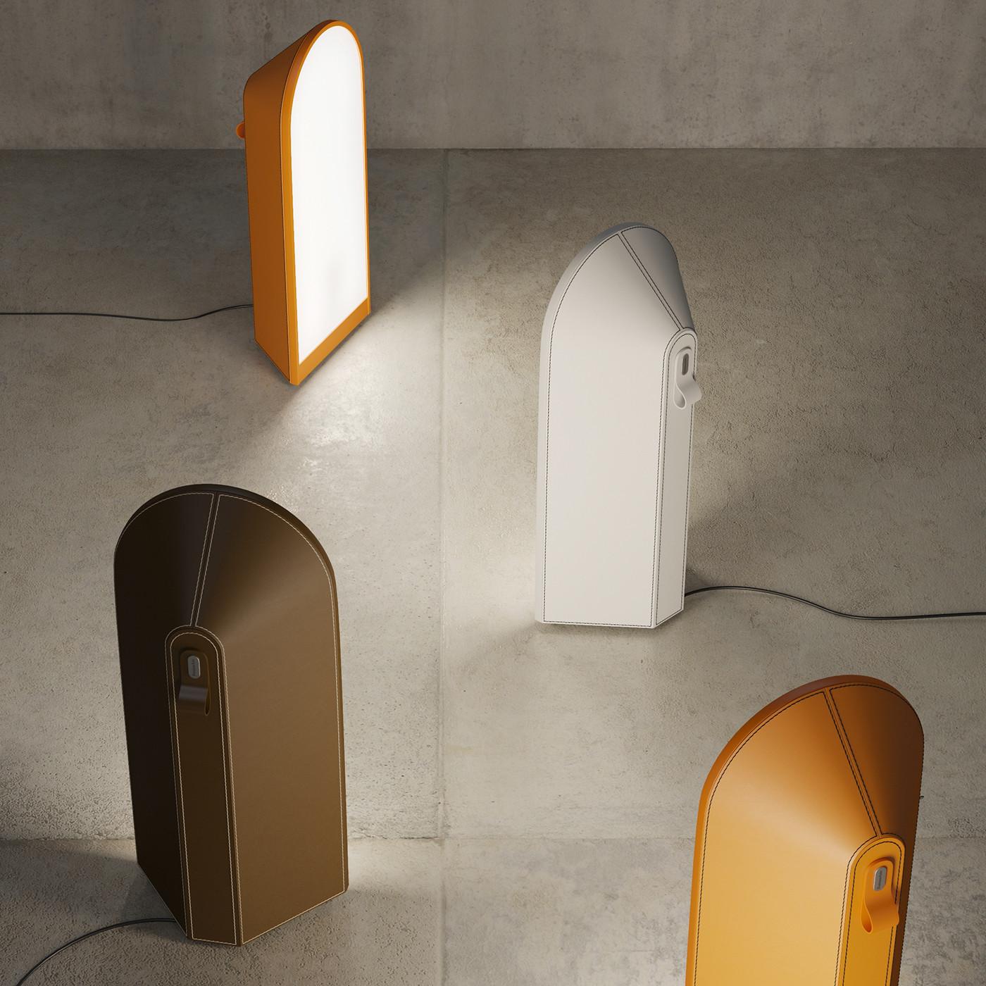 - Features: It includes a distinctive leather handle for easy moving and uses an opaque, leather-wrapped shade to cast a warm, reflected light against walls (wall-washer effect).